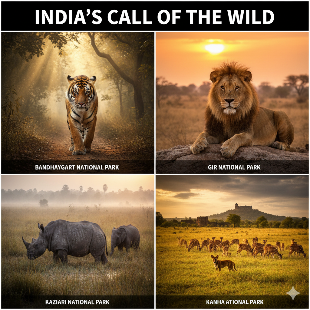- Key Sightings: Asiatic Lions (who live in pride structures different from their African cousins), Leopards, and the unique Chowsingha (four-horned antelope).